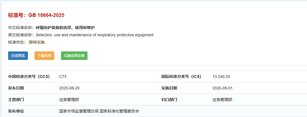 GB 18664-2025 呼吸防護(hù)裝備的選擇、使用和維護(hù)